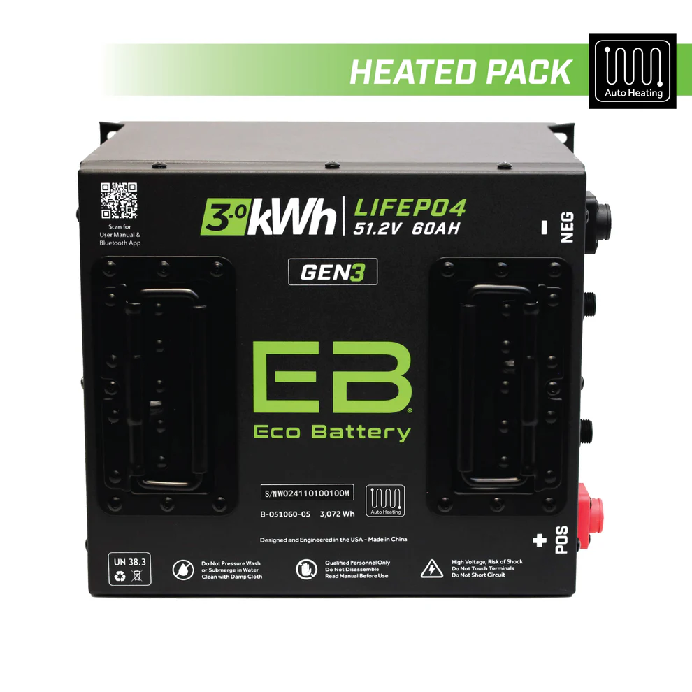 51V 60Ah Cube LiFePO4 Battery / Heated - Battery ONLY - ASK ABOUT OUR BUNDLE PACKAGES FOR YOUr SPECIFIC VEHICLE - 10-Year WARRANTY! PART #: A-051060-05-H
