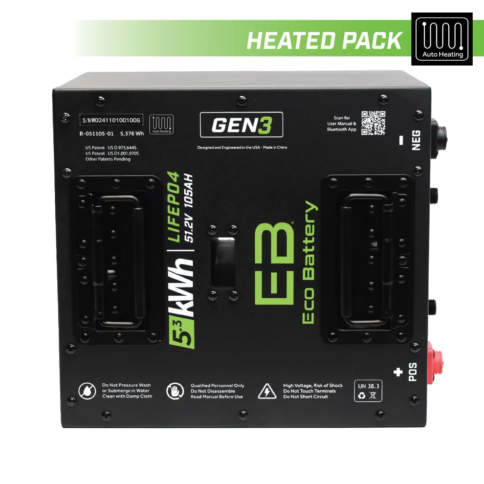 38V 105Ah Cube LiFePO4 Battery / Heated Battery ONLY - ASK ABOUT OUR BUNDLE PACKAGES FOR YOUr SPECIFIC VEHICLE - 10-Year WARRANTY! PART #: - A-038105-04-H