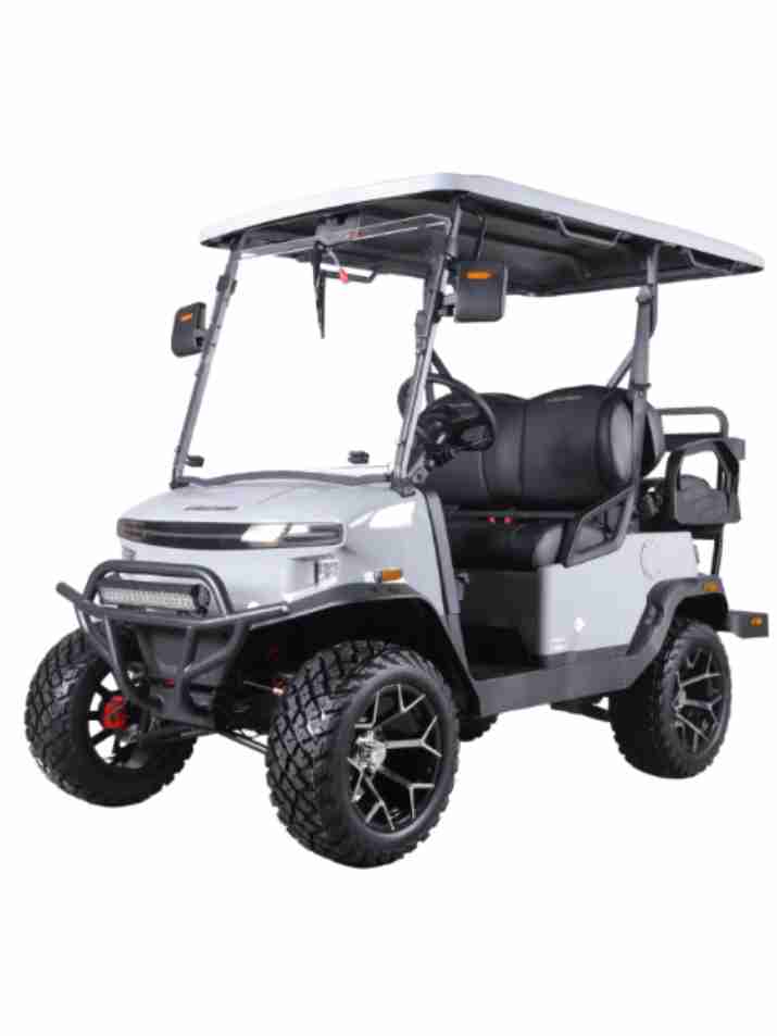 FEATURES: 5kW AC Motor, LiFePO4 Lithium Battery, Tilt Steering, Rear Camera, LED Headlights, Taillights, Brake Lights, Turn Signals, Hazards, Horn. High/Low Beam, Side Mirrors with Turn Signal Indicator, Four Wheel Hydraulic Brakes, Multiple USB ports, Rear Seat Grab Bar, Front and Rear Storage Space, Front and Rear Cupholders, Folding Front Windshield, 40 Mile Range, 5 Hours Full Charge, LED Front Light Bar, 12″ Wheels, Side Reflectors, Display – Digital Speedometer, Battery Level, Mileage 110V AC outlet, High (25 MPH)/Low Speed (15MPH), Seatbelts, Brushguard, 2-YEAR LIMITED WARRANTY / 5-YEAR LITHIUM BATTERY WARRANTY* *Warranty coverage excludes labor and transportation fees.