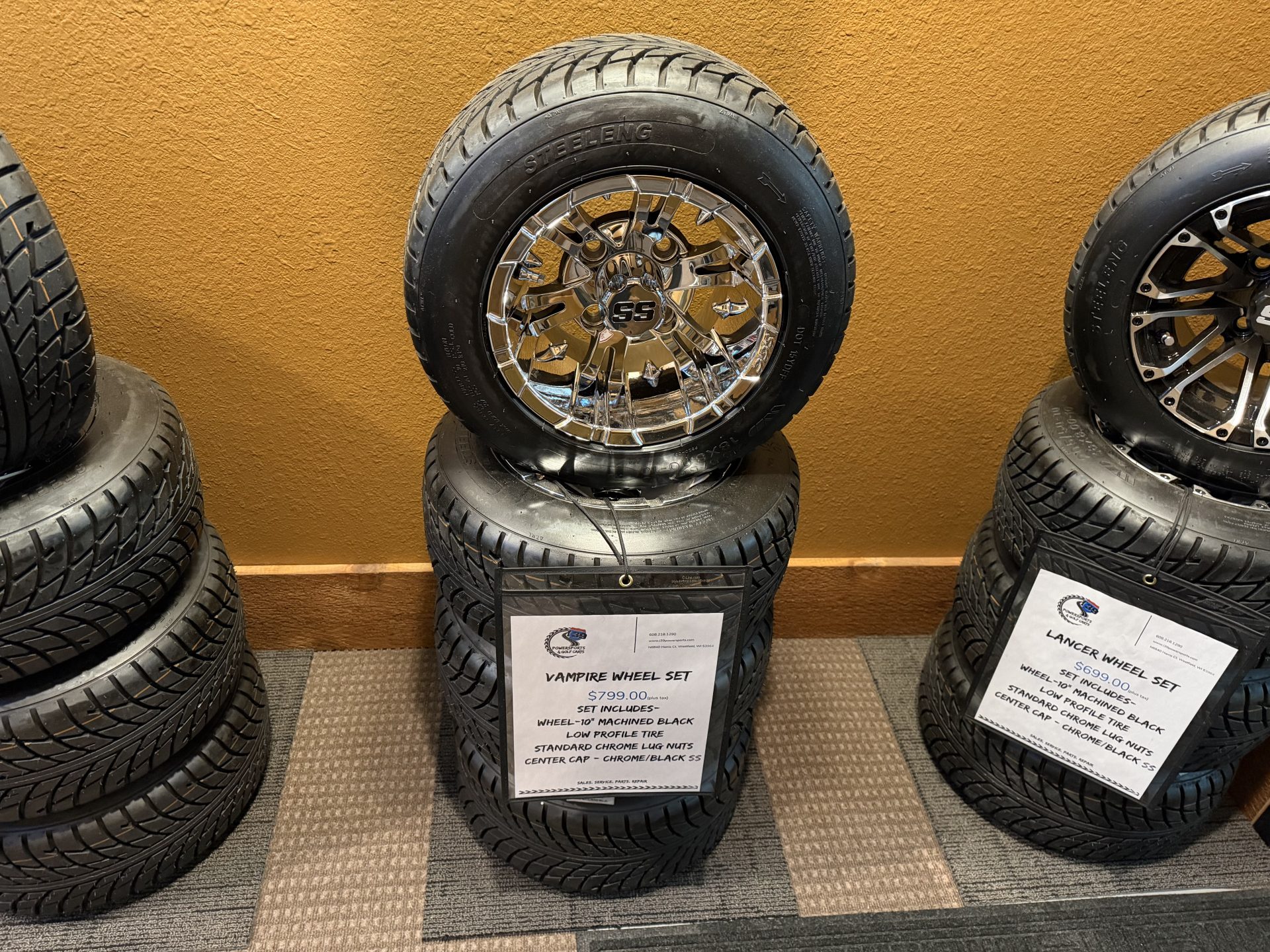 Vampire S wheel set 10" w/low profile radial tire - lug nuts and center caps included - sold as a set - Part #: WH1007 (Wheels) tr1011 (tires)